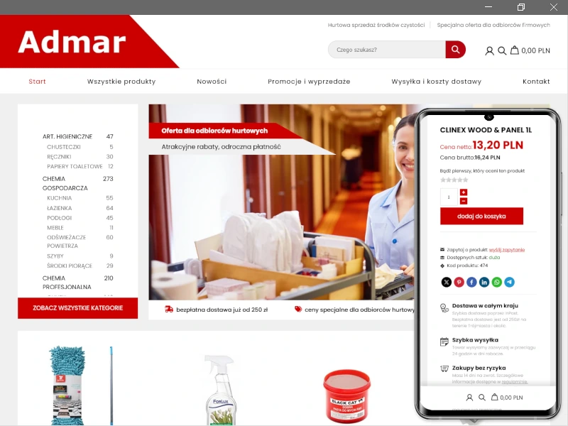 Sklep internetowy Admar Gdynia to miejsce, w którym zaopatrują się głównie profesjonalne firmy zajmujące się utrzymywaniem czystości. Setki produktów oferty specjalne dla stałych odbiorców.